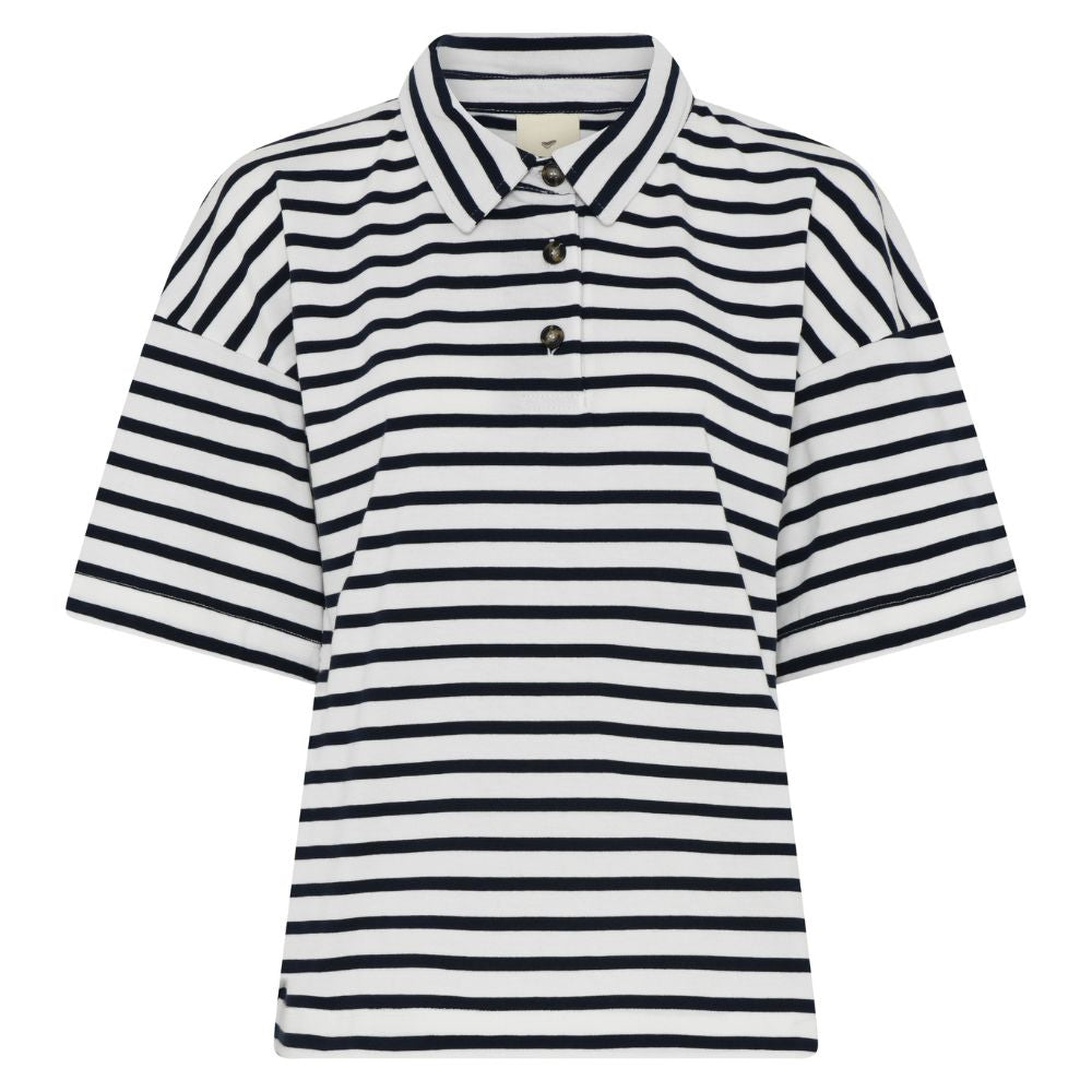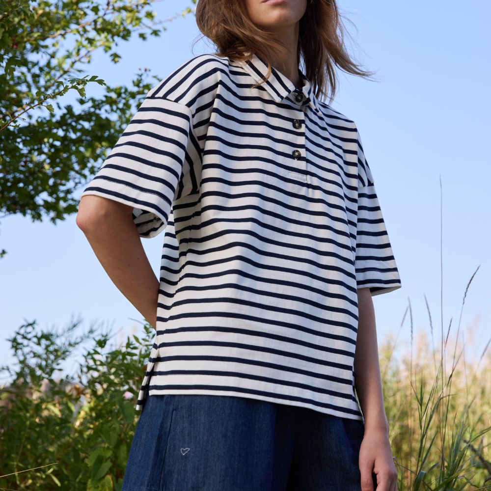 Stribet polo t-shirt med korte ærmer og stolpe lukning, t-shirten er oversized i modellen.