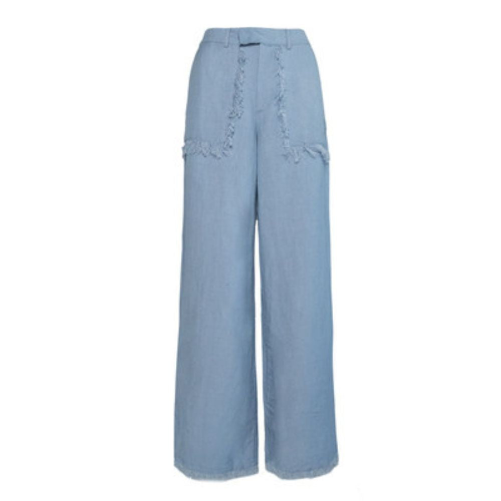 Lækre hør bukser, med frynser ved lommen og forneden.