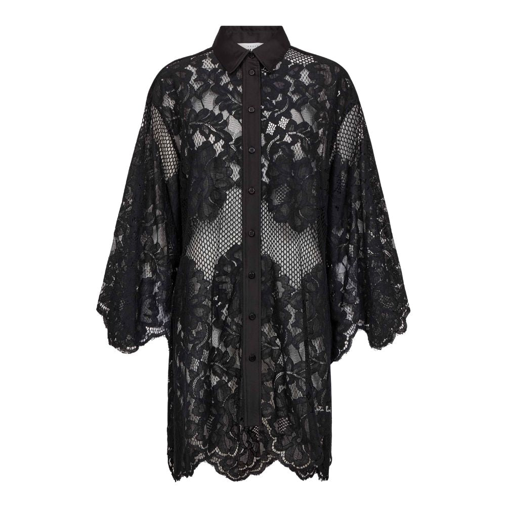 Sort blonde skjorte fra Haute L'amitié. Skjorten er oversized, har en klassisk krave og lukkes med knapper. Den har en lille hvid logo broderi detalje i venstre hjørne.