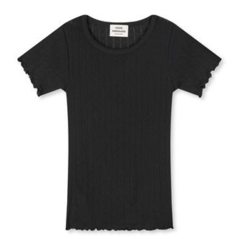 Den sorte klassiske t-shirt med undertøjs mønster, t-shirten er med kort ærme og har rund hals.