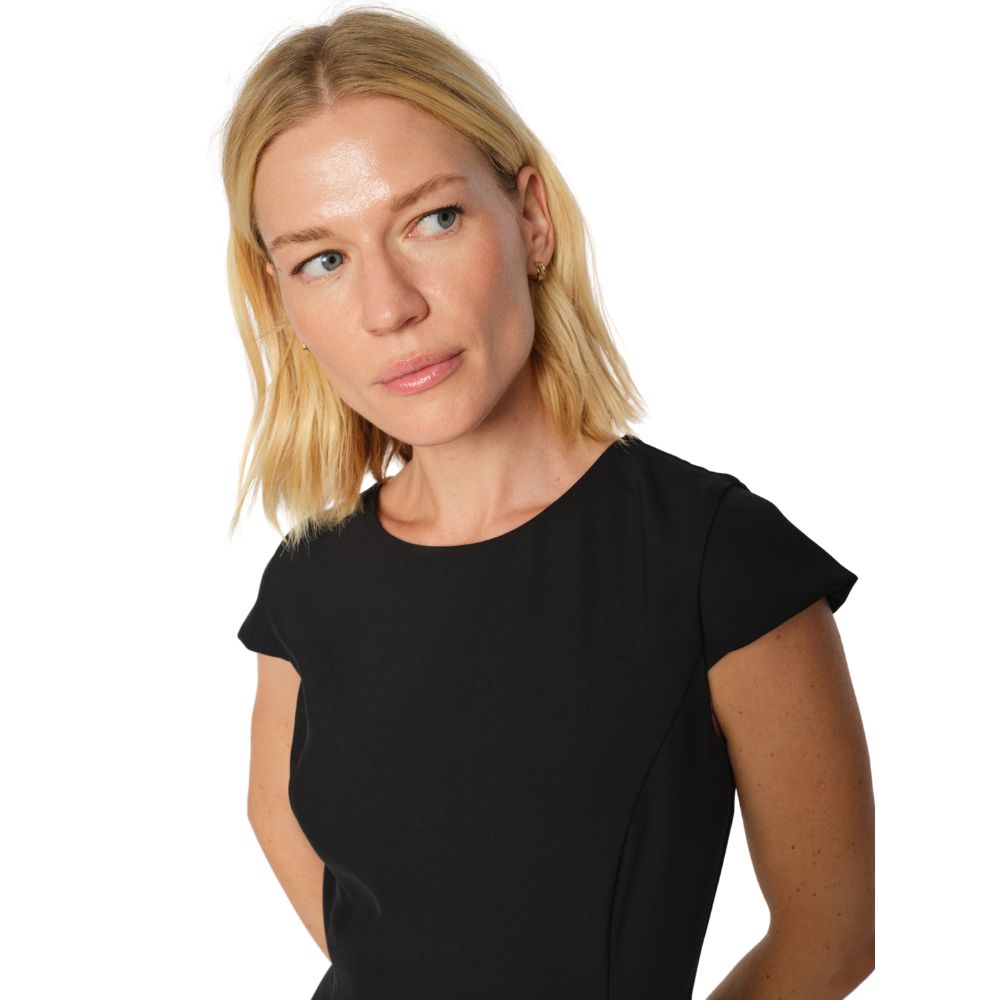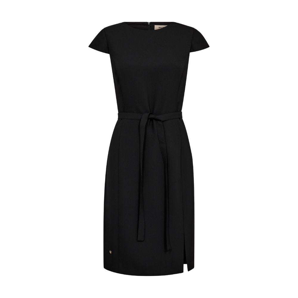 Sort figur syet kjole med lille vinge ærme og binde bånd i taljen.