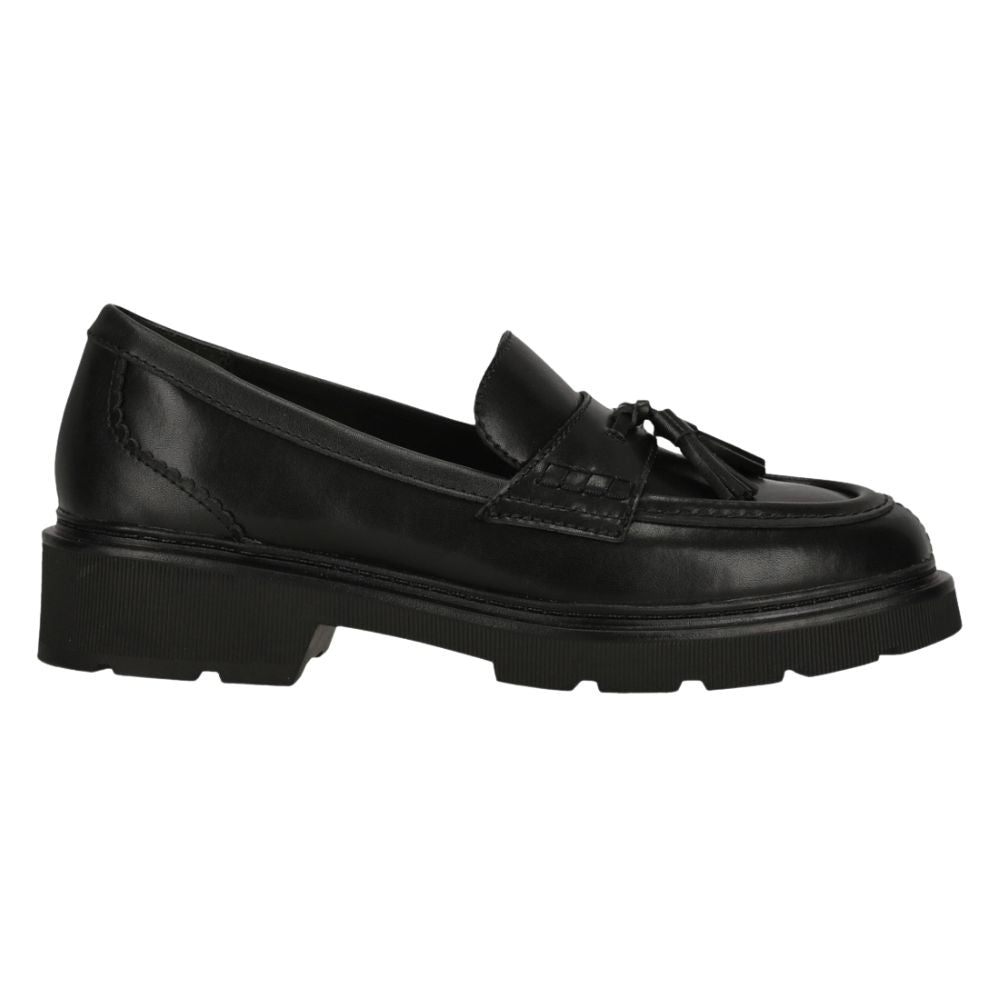 Sorte Clarks Lauryl Tassel loafers med fine flæsedetaljer foran. Udvendigt er de lavet af 100% skind og indvendigt med en bløde indersål for komfort.