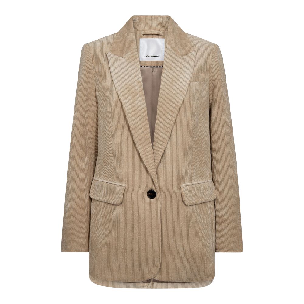Lækker klassisk fløjlsblazer i sand farve, fra Co'couture med enkelt knaplukning og lommer.