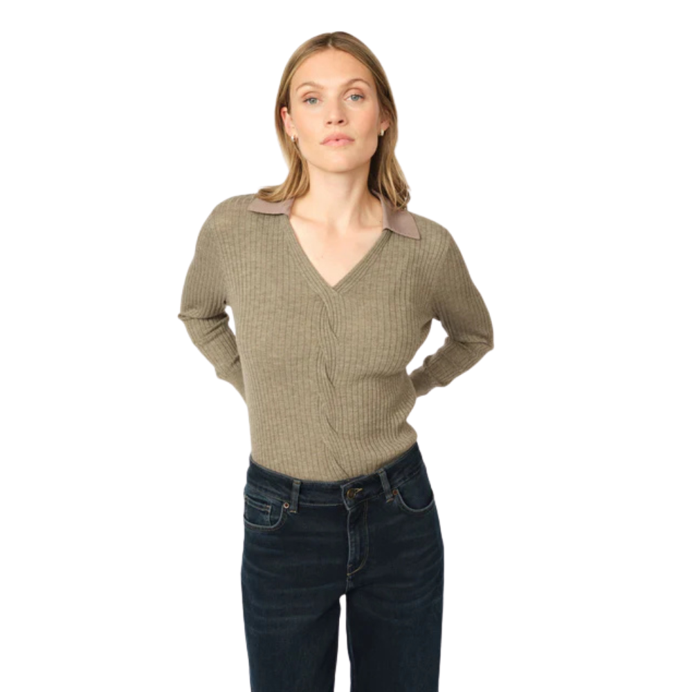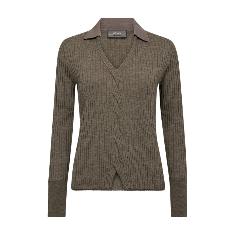 En trendy polo fra Mos Mosh, den er lavet af en blød uldblanding i en regulær pasform. Den har klassisk krave, en chik V-udskæring og elegante flettede strikdetaljer foran.