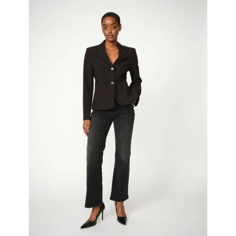 Sort figursyede blazer fra Mos Mosh, der er designet med en klassisk krave og en stilren lukning med to knapper samt skræddersyede pasform.