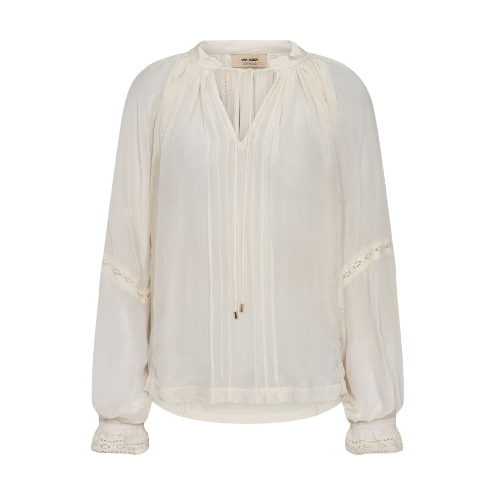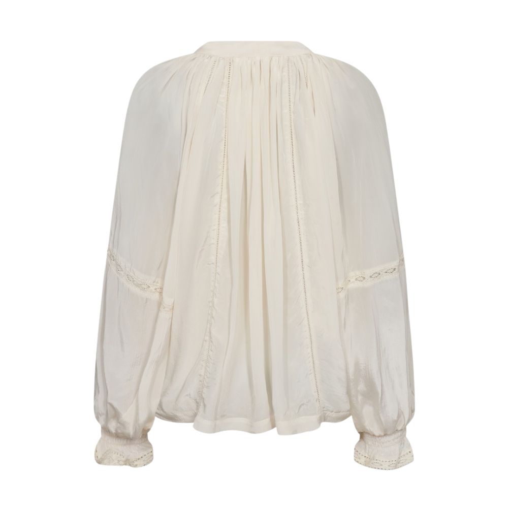 Bluse designet i en afslappet pasform med en V-hals og en justerbar snøre, der giver mulighed for at tilpasse silhuetten.