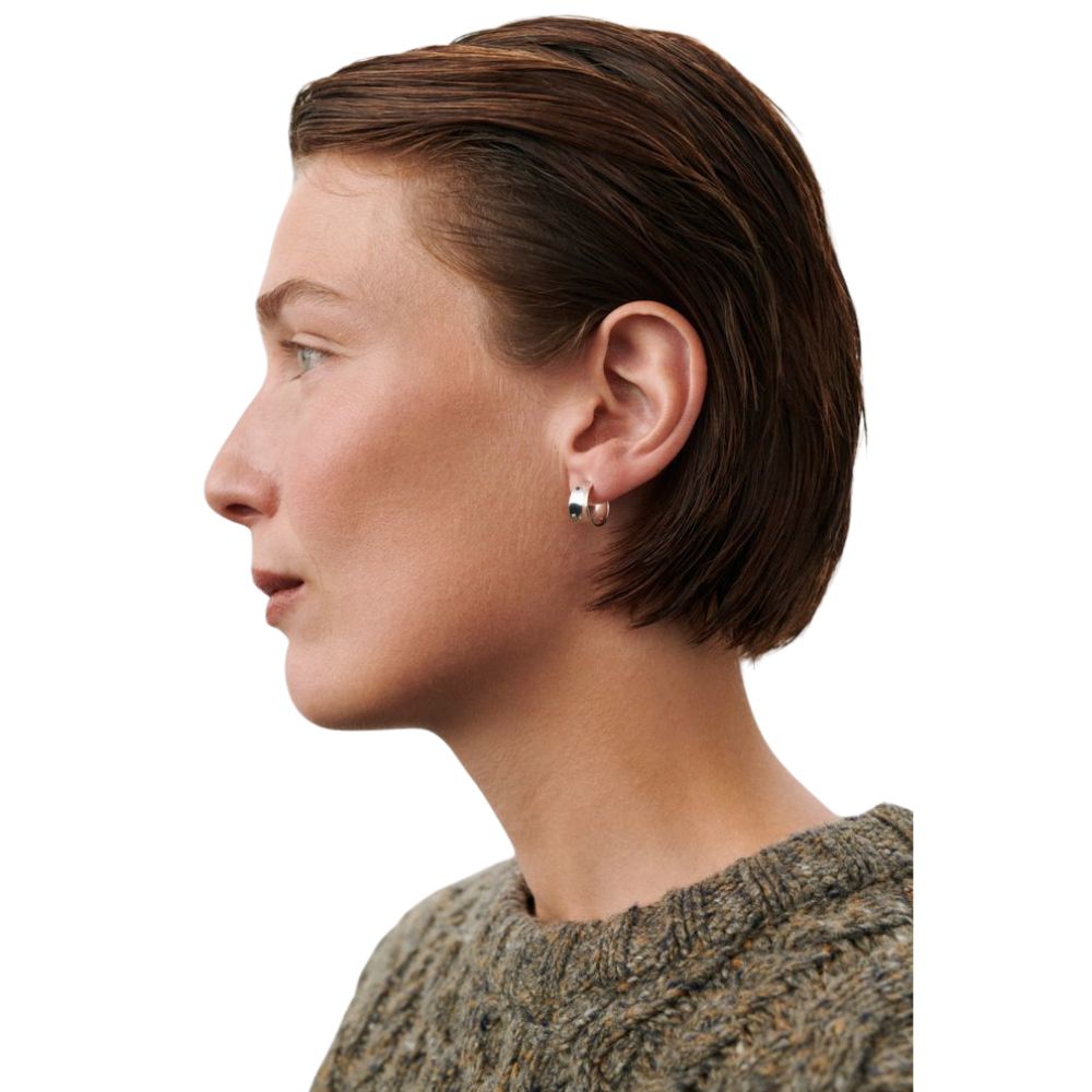 Small Reflection Hoops designet med inspiration fra det klare vinterlys. Øreringens smukke buede form og den spejlblanke overflade gør, at lyset fanges og reflekteres særligt smukt i dette par øreringe.